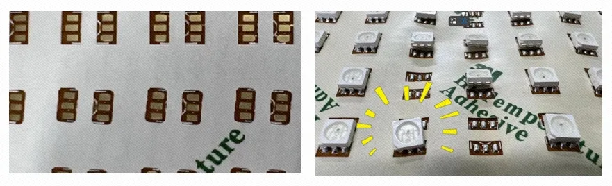 案例3️⃣:同一个贴片元件,两个引脚中间设计有3m胶,焊接后就会导致器件浮起