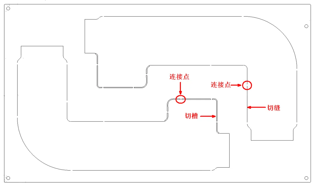 但FPC的基材是PI或PET,也可以理解为一种特殊的塑料,材质轻薄柔韧,无法像PCB那样通过V-CUT或邮票孔实现拼版连接,而是采用切缝+保留连接点的方式实现SET拼版。