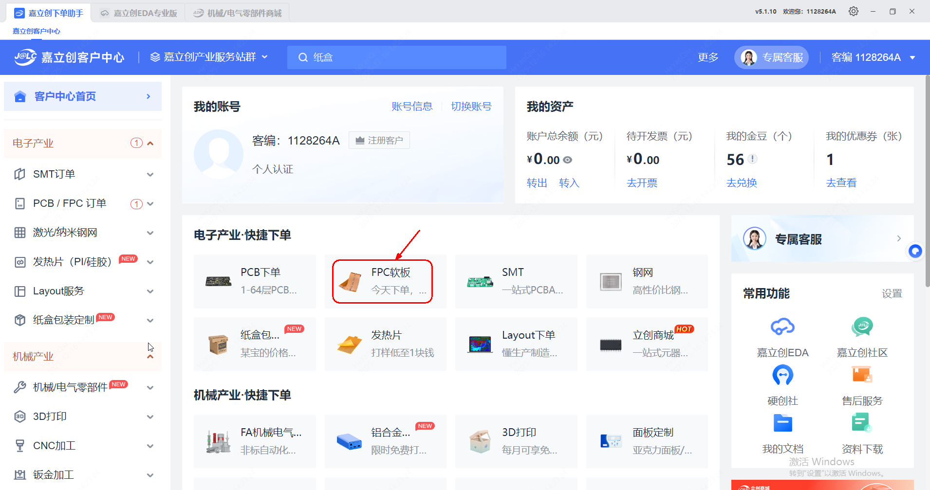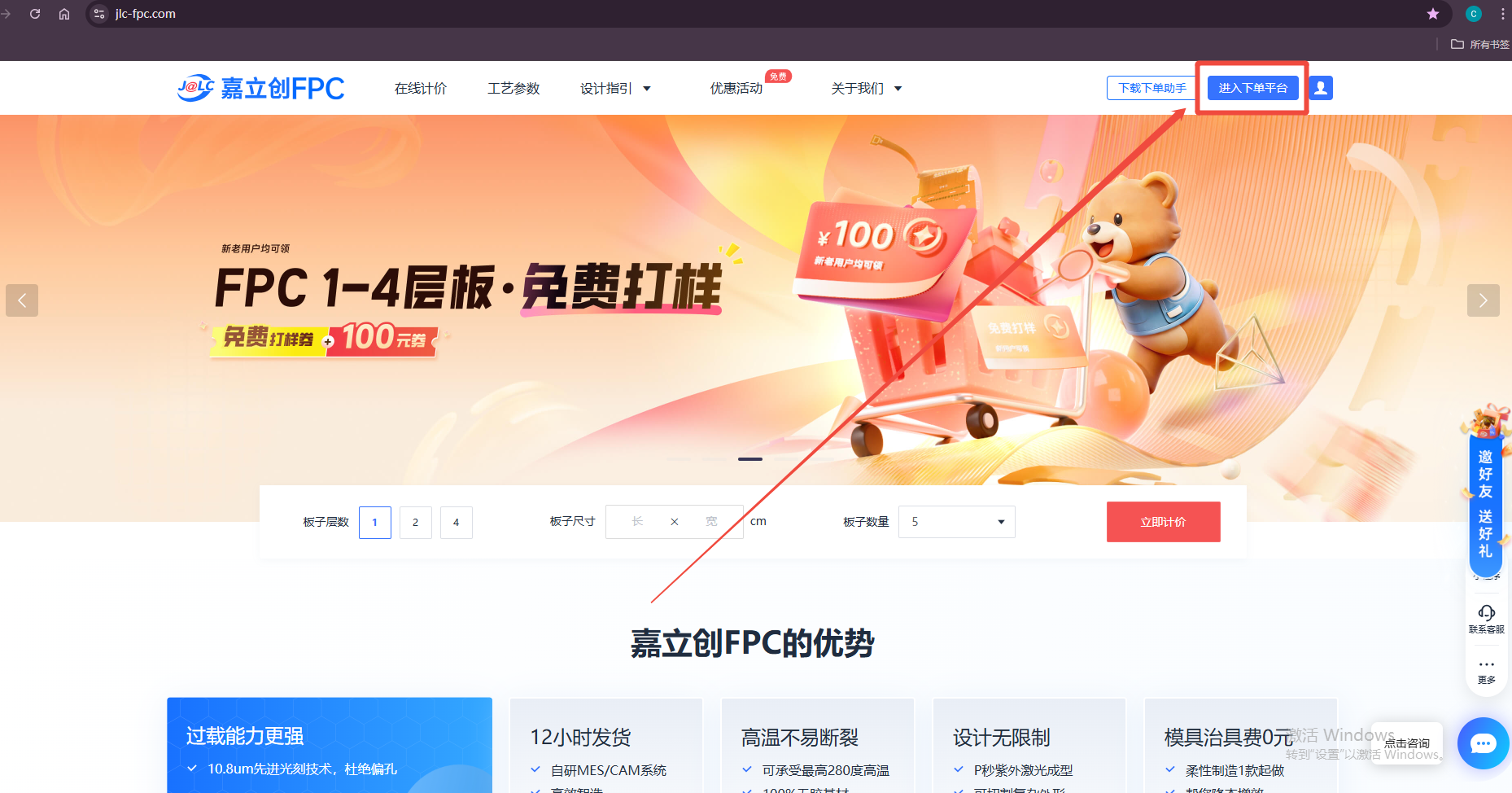2)通过嘉立创FPC官网打开:https://www.jlc-fpc.com/